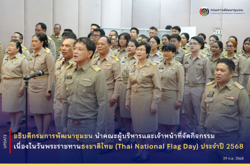 อธิบดีกรมการพัฒนาชุมชน นำคณะผู้บริหารและเจ้าหน้าที่จัดกิจกรรมเนื่องในวันพระราชทานธงชาติไทย (Thai National Flag Day) ประจำปี 2568