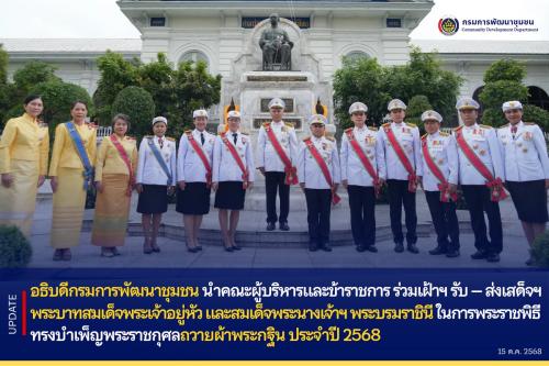 อธิบดีกรมการพัฒนาชุมชน นำคณะผู้บริหารและข้าราชการ ร่วมเฝ้าฯ รับ – ส่งเสด็จฯ พระบาทสมเด็จพระเจ้าอยู่หัว และสมเด็จพระนางเจ้าฯ พระบรมราชินี ในการพระราชพิธีทรงบำเพ็ญพระราชกุศลถวายผ้าพระกฐิน ประจำปี 2568