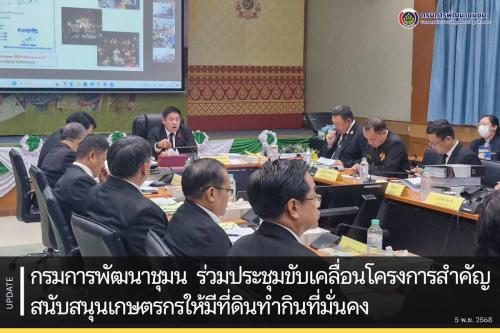 กรมการพัฒนาชุมน ร่วมประชุมขับเคลื่อนโครงการสำคัญ สนับสนุนเกษตรกรให้มีที่ดินทำกินที่มั่นคง