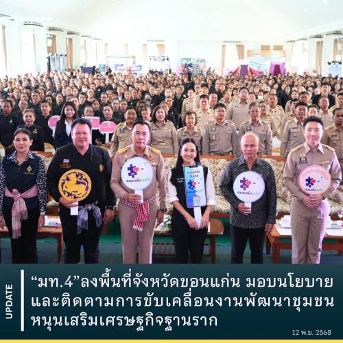 “มท.4” ลงพื้นที่จังหวัดขอนแก่นมอบนโยบายและติดตามการขับเคลื่อนงานพัฒนาชุมชน หนุนเสริมเศรษฐกิจฐานราก