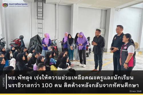 พช.พัทลุง เร่งให้ความช่วยเหลือคณะครูและนักเรียนนราธิวาสกว่า 100 คน ติดค้างหลังกลับจากทัศนศึกษา