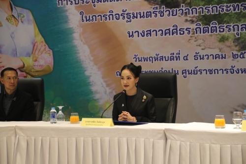 เวลา 13.00–14.30 น. ณ ห้องประชุมภูผา ศาลากลางจังหวัดพังงา รัฐมนตรีช่วยว่าการฯ ได้ติดตามผลการดำเนินงานของจังหวัดในประเด็นสำคัญ อาทิ การขยายผล “คนละครึ่ง พลัส” เพื่อเพิ่มรายได้ให้ประชาชนและผู้ประกอบการรายย่อย การส่งเสริมท่องเที่ยวชุมชน การเร่งรัดการเบิกจ่ายงบประมาณ การเตรียมความพร้อมด้านป้องกันและบรรเทาสาธารณภัย และการจัดทำคำของบประมาณปี 2570 ให้สอดคล้องกับนโยบายรัฐบาล โดยมี ว่าที่ร้อยตรีตระกูล โทธรรม ผู้ตรวจราชการกระทรวงมหาดไทย, นายสงัด พืชพันธุ์ หัวหน้าผู้ตรวจราชการกรม, และคณะข้าราชการกรมการพัฒนาชุมชน ร่วมสนับสนุนภารกิจอย่างใกล้ชิด