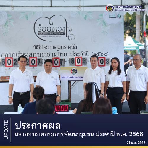 ประกาศผลสลากกาชาดกรมการพัฒนาชุมชน ประจำปี พ.ศ. 2568