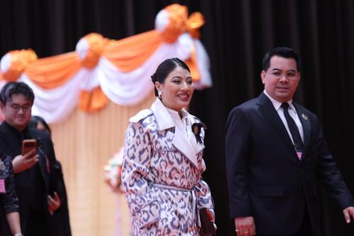 โอกาสนี้ นางสาวศศิธร กิตติธรกุล รัฐมนตรีช่วยว่าการกระทรวงมหาดไทย นายอรรษิษฐ์ สัมพันธรัตน์ ปลัดกระทรวงมหาดไทย นางจิณณารัชช์ สัมพันธรัตน์ นายกสมาคมแม่บ้านมหาดไทย นายสยาม ศิริมงคล อธิบดีกรมการพัฒนาชุมชน นางอรจิรา ศิริมงคล ประธานชมรมแม่บ้านพัฒนาชุมชน ผู้บริหารกระทรวงมหาดไทย ผู้บริหารกระทรวงพาณิชย์ ผู้ว่าราชการจังหวัดภาคตะวันออกเฉียงเหนือ คณะผู้บริหารกรมการพัฒนาชุมชน พัฒนาการจังหวัดภาคตะวันออกเฉียงเหนือ เจ้าหน้าที่ และผู้ประกอบการจากจังหวัดต่าง ๆ เฝ้ารับเสด็จ
