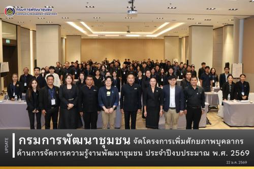 กรมการพัฒนาชุมชน จัดโครงการเพิ่มศักยภาพบุคลากรด้านการจัดการความรู้งานพัฒนาชุมชน ประจำปีงบประมาณ พ.ศ. 2569