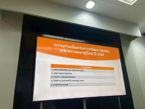 กรมการพัฒนาชุมชนและบริษัท ซีพี ออลล์ จำกัด (มหาชน) จะเดินหน้าวางแผนงานร่วมกัน เพื่อพัฒนาและสนับสนุนศักยภาพผู้ประกอบการชุมชนไทย และยกระดับสินค้า OTOP สู่ Modern Trade ที่จะช่วยเพิ่มช่องทางการตลาดให้ผู้ประกอบการชุมชน สร้างโอกาสทางเศรษฐกิจฐานราก และยกระดับคุณภาพชีวิตของประชาชนอย่างยั่งยืน โดยทุกฝ่ายจะร่วมกันขับเคลื่อนต่อเนื่อง เพื่อให้สินค้า OTOP ไทย “ขายได้จริง” และเติบโตได้ทันในตลาดสมัยใหม่