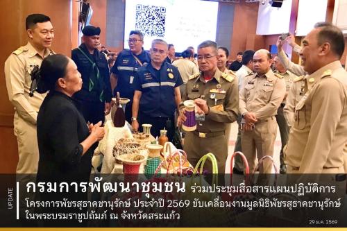 กรมการพัฒนาชุมชน ร่วมประชุมสื่อสารแผนปฏิบัติการโครงการพัชรสุธาคชานุรักษ์ ประจำปี 2569 ขับเคลื่อนงานมูลนิธิพัชรสุธาคชานุรักษ์ ในพระบรมราชูปถัมภ์ ณ จังหวัดสระแก้ว