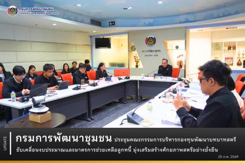 กรมการพัฒนาชุมชน ประชุมคณะกรรมการบริหารกองทุนพัฒนาบทบาทสตรี ขับเคลื่อนงบประมาณและมาตรการช่วยเหลือลูกหนี้ มุ่งเสริมสร้างศักยภาพสตรีอย่างยั่งยืน