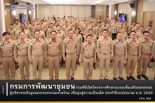 กรมการพัฒนาชุมชน ร่วมพิธีเปิดโครงการศึกษาอบรมเพื่อเสริมสมรรถนะผู้บริหารระดับสูงของกระทรวงมหาดไทย เพื่อมุ่งสู่ความเป็นเลิศ ประจำปีงบประมาณ พ.ศ. 2569