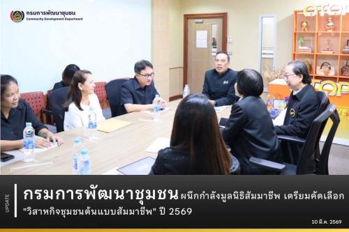 วันที่ 10 มีนาคม 2569 เวลา 10.00 น. ณ ห้อง Live Streaming กรมการพัฒนาชุมชน นายวรงค์ แสงเมือง รองอธิบดีกรมการพัฒนาชุมชน ให้การต้อนรับผู้แทนจากมูลนิธิสัมมาชีพ ในโอกาสเข้าพบเพื่อหารือแนวทางการดำเนินงานร่วมกันและติดตามความคืบหน้าการขับเคลื่อนโครงการมอบรางวัลวิสาหกิจชุมชนต้นแบบสัมมาชีพ ประจำปี 2569