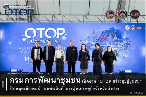 วันที่ 14 มีนาคม 2569 เวลา 17.00 น. ณ ตลาดเพ็ญทรัพย์ อ.เมืองลำปาง จ.ลำปาง นายรณรงค์ เทพรักษ์ รองผู้ว่าราชการจังหวัดลำปาง เป็นประธานในพิธีเปิดงาน “OTOP สร้างสุขสู่ชุมชน” จุดดำเนินการจังหวัดลำปาง โดยมีคณะผู้บริหาร ผู้ตรวจราชการกรมการพัฒนาชุมชน พัฒนาการจังหวัด หัวหน้าส่วนราชการระดับจังหวัด เจ้าหน้าที่พัฒนาชุมชน และกลุ่มผู้ผลิตผู้ประกอบการ OTOP เข้าร่วมพิธีเปิดอย่างคึกคัก เพื่อเดินหน้ายกระดับผลิตภัณฑ์ชุมชน เพิ่มช่องทางการตลาด และสร้างรายได้หมุนเวียนให้แก่เศรษฐกิจฐานรากในพื้นที่ภาคเหนือ