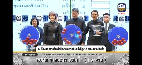 วันที่ (16 เมษายน 2569) เวลา 09.30 น. ณ ห้องออกรางวัล ชั้น 1 อาคารออกรางวัล สำนักงานสลากกินแบ่งรัฐบาล ถนนนนทบุรี ตำบลท่าทราย อำเภอเมืองนนทบุรี จังหวัดนนทบุรี นายสยาม ศิริมงคล อธิบดีกรมการพัฒนาชุมชน ให้เกียรติเป็นประธานกรรมการออกรางวัลสลากออมทรัพย์ธนาคารเพื่อการเกษตรและสหกรณ์การเกษตร (ธ.ก.ส.) งวดประจำวันที่ 16 เมษายน 2569