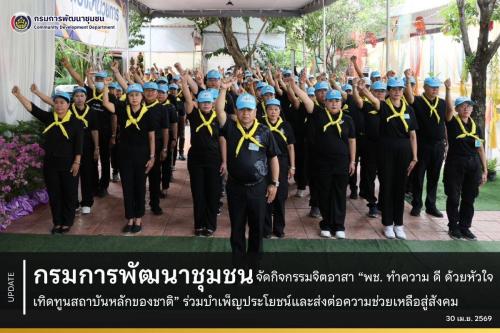 กรมการพัฒนาชุมชน จัดกิจกรรมจิตอาสา “พช. ทำความ ดี ด้วยหัวใจ เทิดทูนสถาบันหลักของชาติ” ร่วมบำเพ็ญประโยชน์และส่งต่อความช่วยเหลือสู่สังคม