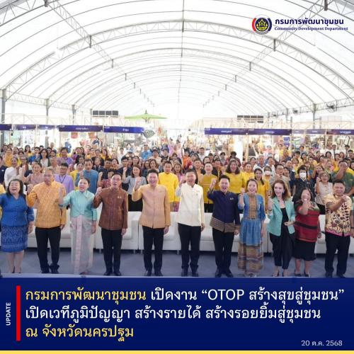 กรมการพัฒนาชุมชน เปิดงาน “OTOP สร้างสุขสู่ชุมชน” เปิดเวทีภูมิปัญญา สร้างรายได้ สร้างรอยยิ้มสู่ชุมชน ณ จังหวัดนครปฐม