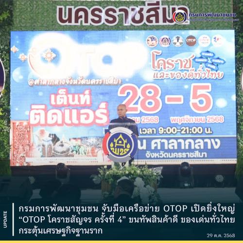 กรมการพัฒนาชุมชน จับมือเครือข่าย OTOP เปิดยิ่งใหญ่ “OTOP โคราชสัญจร ครั้งที่ 4” ขนทัพสินค้าดี ของเด่นทั่วไทย กระตุ้นเศรษฐกิจฐานราก
