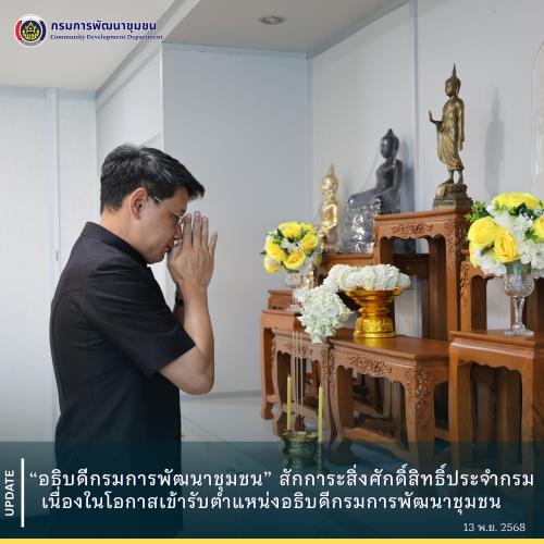 วันที่ 13 พฤศจิกายน 2568 เวลา 14.29 น. นายสยาม ศิริมงคล อธิบดีกรมการพัฒนาชุมชน ได้เดินทางเข้าสักการะ พระพุทธพัฒนปชานาถ พระพุทธรูปปางประทานพร และกราบสักการะรูปหล่อ สมเด็จพระเจ้าบรมวงศ์เธอ กรมพระยาดำรงราชานุภาพ สิ่งศักดิ์สิทธิ์ประจำกรมการพัฒนาชุมชน เนื่องในโอกาสเข้ารับตำแหน่งอธิบดีกรมการพัฒนาชุมชน คนที่ 35 อย่างเป็นทางการ ณ กรมการพัฒนาชุมชน ศูนย์ราชการเฉลิมพระเกียรติฯ อาคารรัฐประศาสนภักดี เขตหลักสี่ กรุงเทพมหานคร