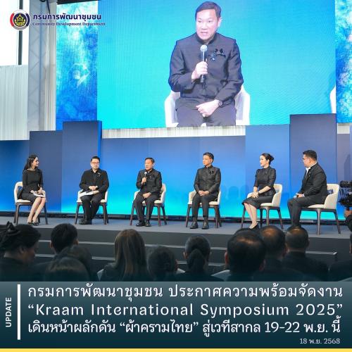 วันที่ 18 พฤศจิกายน 2568 เวลา 14.09 น. ณ ชั้น 14 เอ็มทาวเวอร์ ศูนย์การค้าเอ็มสเฟียร์ กรุงเทพมหานคร กรมการพัฒนาชุมชน กระทรวงมหาดไทย จัดงานแถลงข่าวประกาศความพร้อมในการจัดงาน "Kraam International Symposium 2025" เสวนาวิชาการระดับนานาชาติครั้งยิ่งใหญ่แห่งปี ภายใต้โครงการศึกษาและพัฒนาองค์ความรู้ผ้าย้อมครามเพื่อการพัฒนาผลิตภัณฑ์สู่สากล 2568 บนแนวคิด "HANDS ACROSS CULTURE" ก้าวสำคัญในการยกระดับและสร้างภาพลักษณ์ใหม่ให้ “ผ้าย้อมครามไทย” สู่เวทีแฟชั่นระดับโลก ตามแนวพระดำริ “ผ้าไทยใส่ให้สนุก” ใน สมเด็จพระเจ้าลูกเธอ เจ้าฟ้าสิริวัณณวรี นารีรัตนราชกัญญา ชวนชาวไทยร่วมสร้างประวัติศาสตร์ 19-22 พฤศจิกายน 2568 นี้ ณ ชั้น 14 เอ็มทาวเวอร์ ศูนย์การค้าเอ็มสเฟียร์ กรุงเทพมหานคร