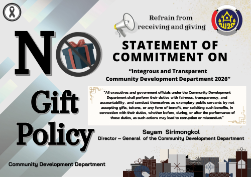 ประกาศเจตนารมณ์นโยบาย No Gift Policy กรมการพัฒนาชุมชน